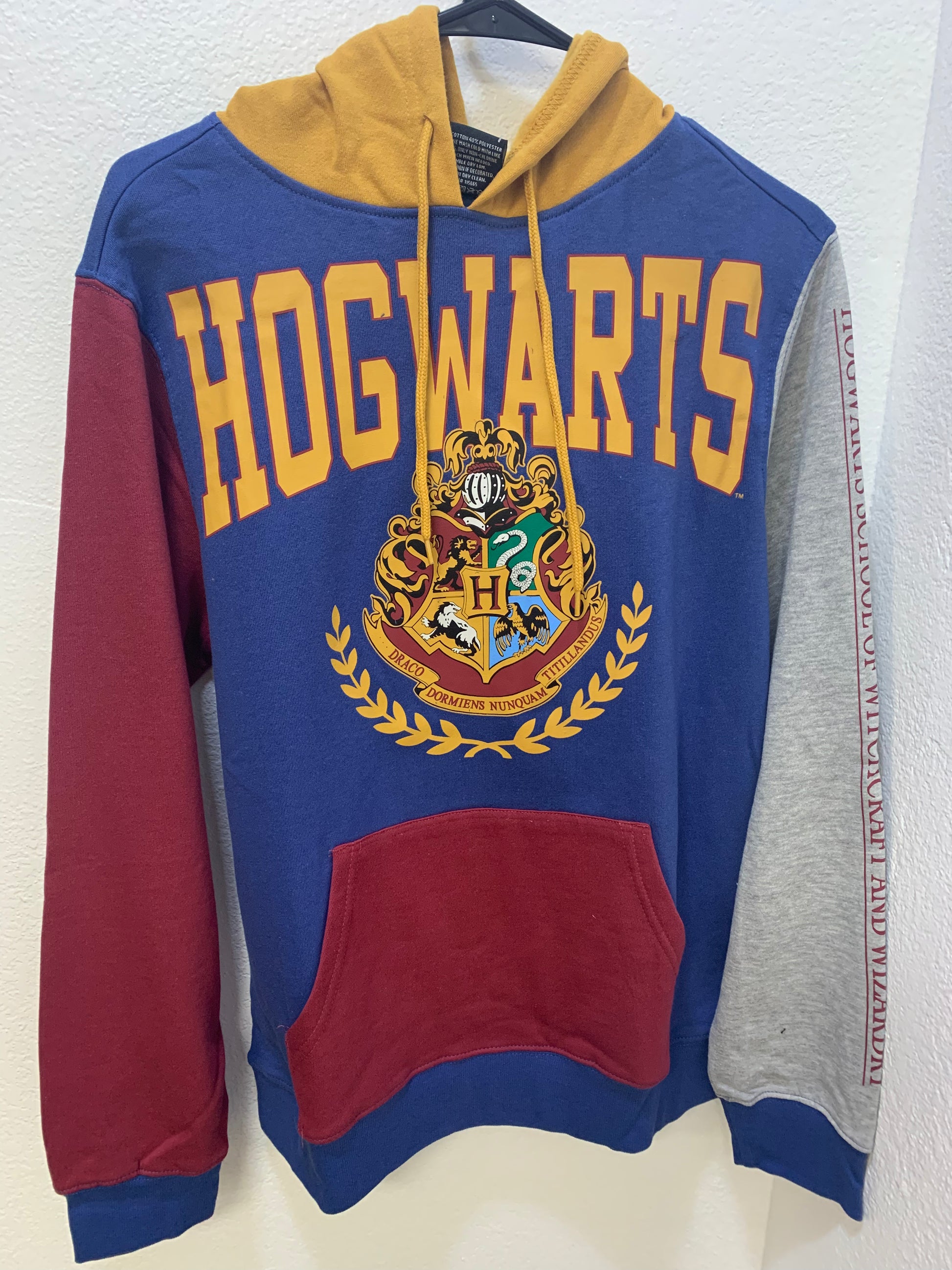 This officially licensed hoodie wraps you in wizarding world warmth: featuring the iconic Hogwarts crest in multicolored glory, stitched on a cotton-poly blend that’s soft, breathable, and spell-ready. Whether you're braving con-day chills, styling booth display magic, or surviving shipping zone spells, this pullover delivers boutique polish with a side of house-coded pride. Machine washable, lightweight, and perfect for fans who accessorize with legacy and walk the line between cozy and enchanted.