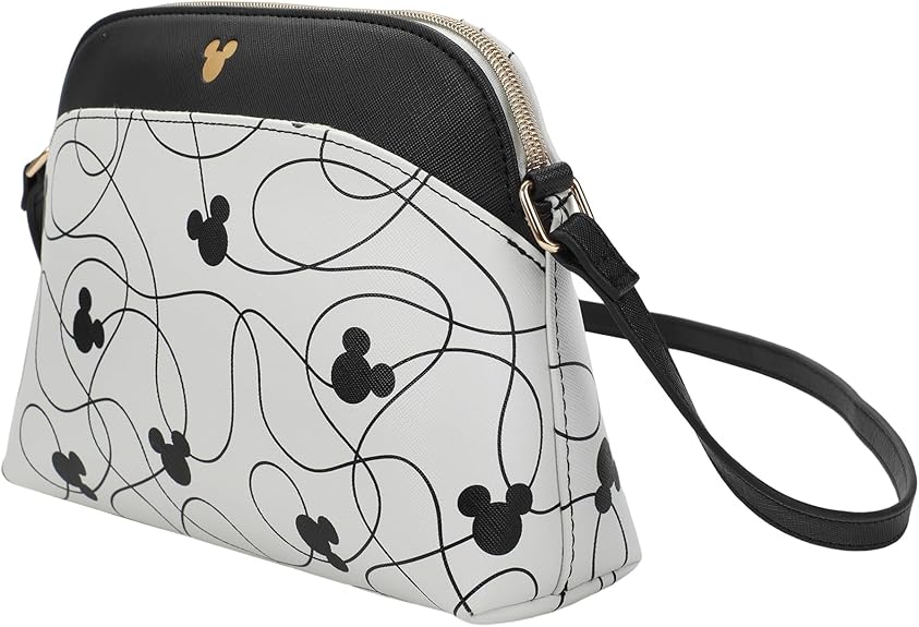 - Design: Elevate your style with this chic crossbody purse featuring a dazzling metal Mickey Mouse badge in gold, adorned with an enchanting design of Mickey Mouse silhouette heads interconnected by playful scribbles.